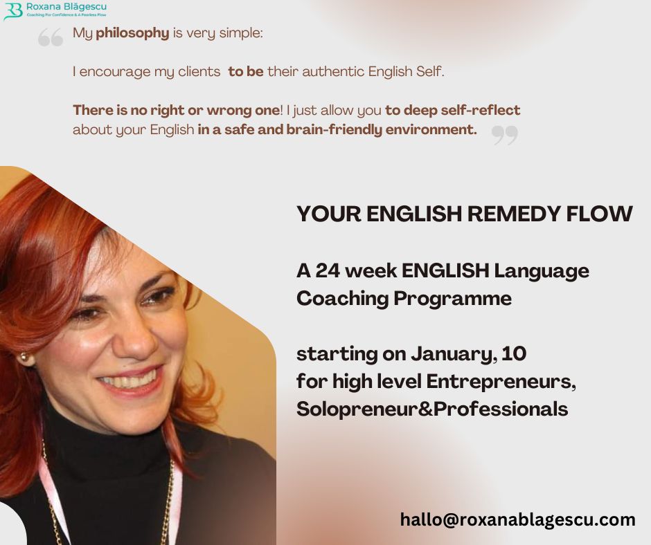 Your English Remedy Flow este un mixt de coaching, mentorat, training și atelier.
