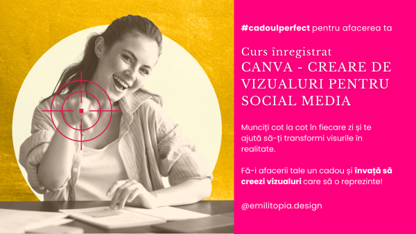 Dacă dorești, poți face acest curs cadou unei antreprenoare care are nevoie de așa ceva în afacerea ei. În urma plății vei primi un voucher cadou pe care să i-l oferi și cu care va putea solicita acest serviciu din partea @emilitopia.design după 15.01.2024.
