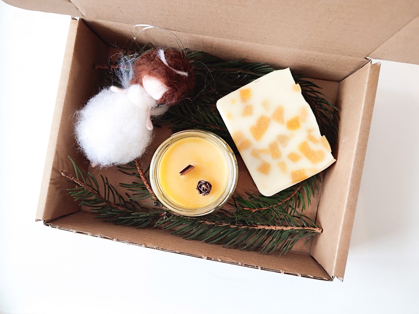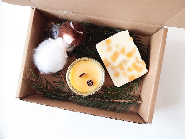 Cutie de cadouri de Crăciun cu produse minunate de la meșteșugari locali: