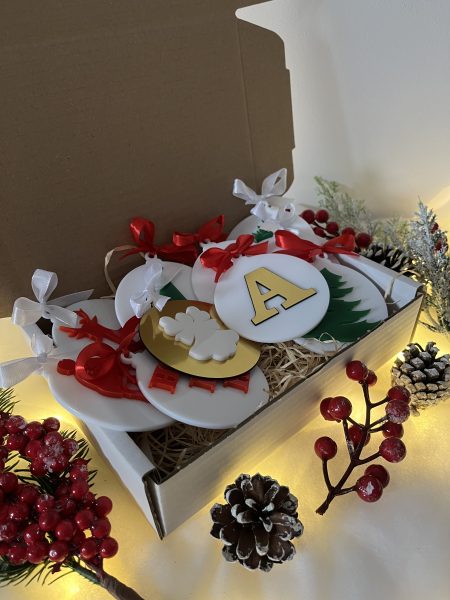 Upgradează-ți decorul sărbătorilor cu setul nostru versatil de șase ornamente pentru bradul de Crăciun, confecționate din plexiglas colorat. Fiecare ornament emană farmec festiv, oferind opțiuni care variază de la motive clasice de Crăciun, precum Moș Crăciu, îngeri sau brăduți, la detalii personalizate cu inițiale. Concepute cu grijă și atenție la detalii, aceste ornamente nu doar aduc bucurie bradului, ci îl îmbogățesc și cu o explozie de culoare și individualitate. Fiecare client poate alege șase ornamente dintre zece opțiuni posibile, permițându-vă să vă personalizați decorațiunile în funcție de preferințe. Fie că sărbătoriți figuri iconice ale sezonului sau adăugați o notă personală cu inițiale, acest set îmbunătățește decorul sărbătorilor voastre cu o combinație perfectă de căldură, personalitate și estetică vibrantă.
