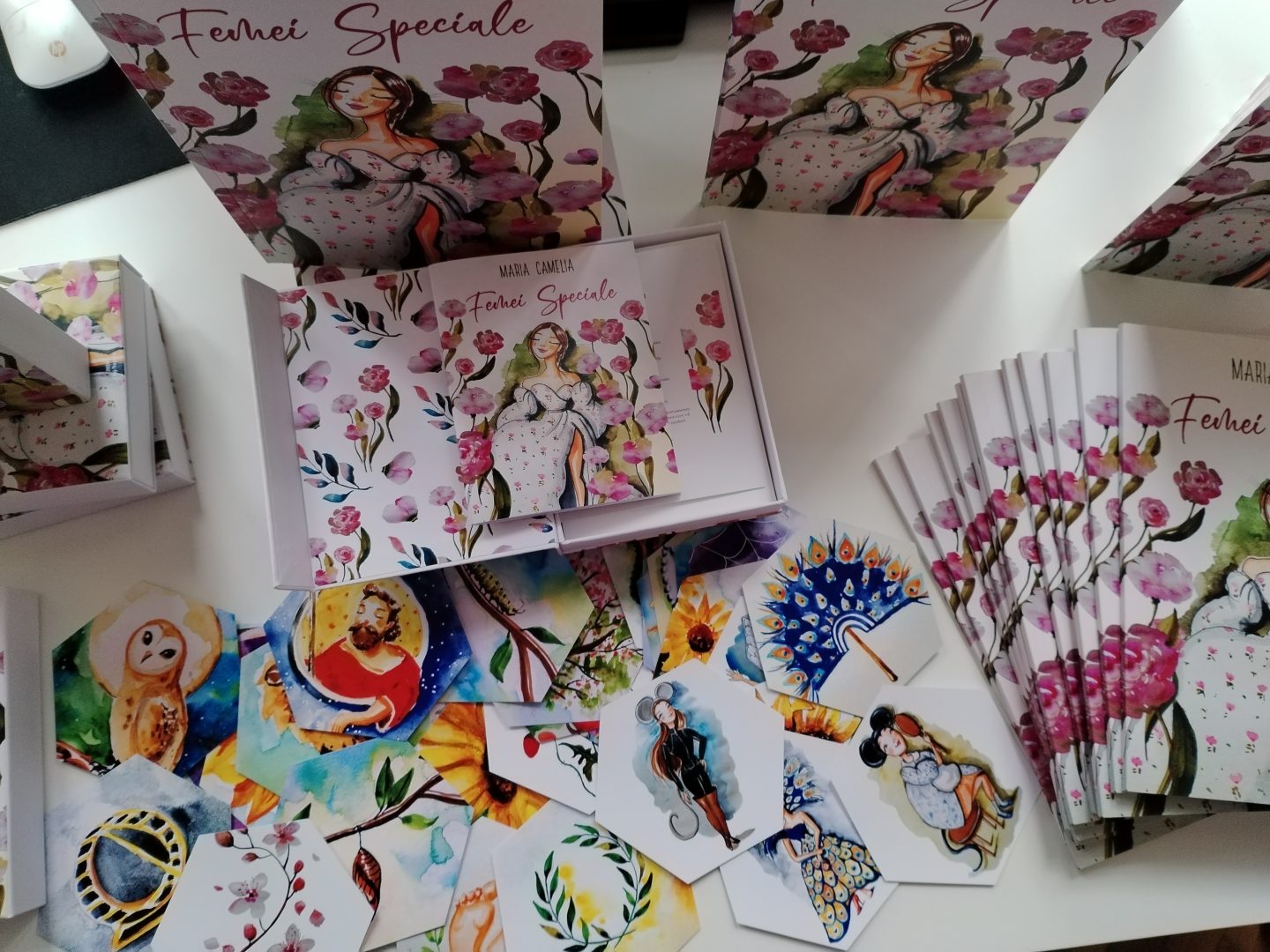 Set 40 carduri motivaționale create pe baza poveștilor cărții “Femei Speciale”. Cardurile frumos ilustrate în acuarelă conțin întrebări sau afirmații ce te vor ghida în călătoria ta interioară spre regăsirea autenticității. Setul conține și cartea “Femei Speciale” în miniatură pentru a înțelege mesajele cardurilor și câteva idei de cum le poți folosi.