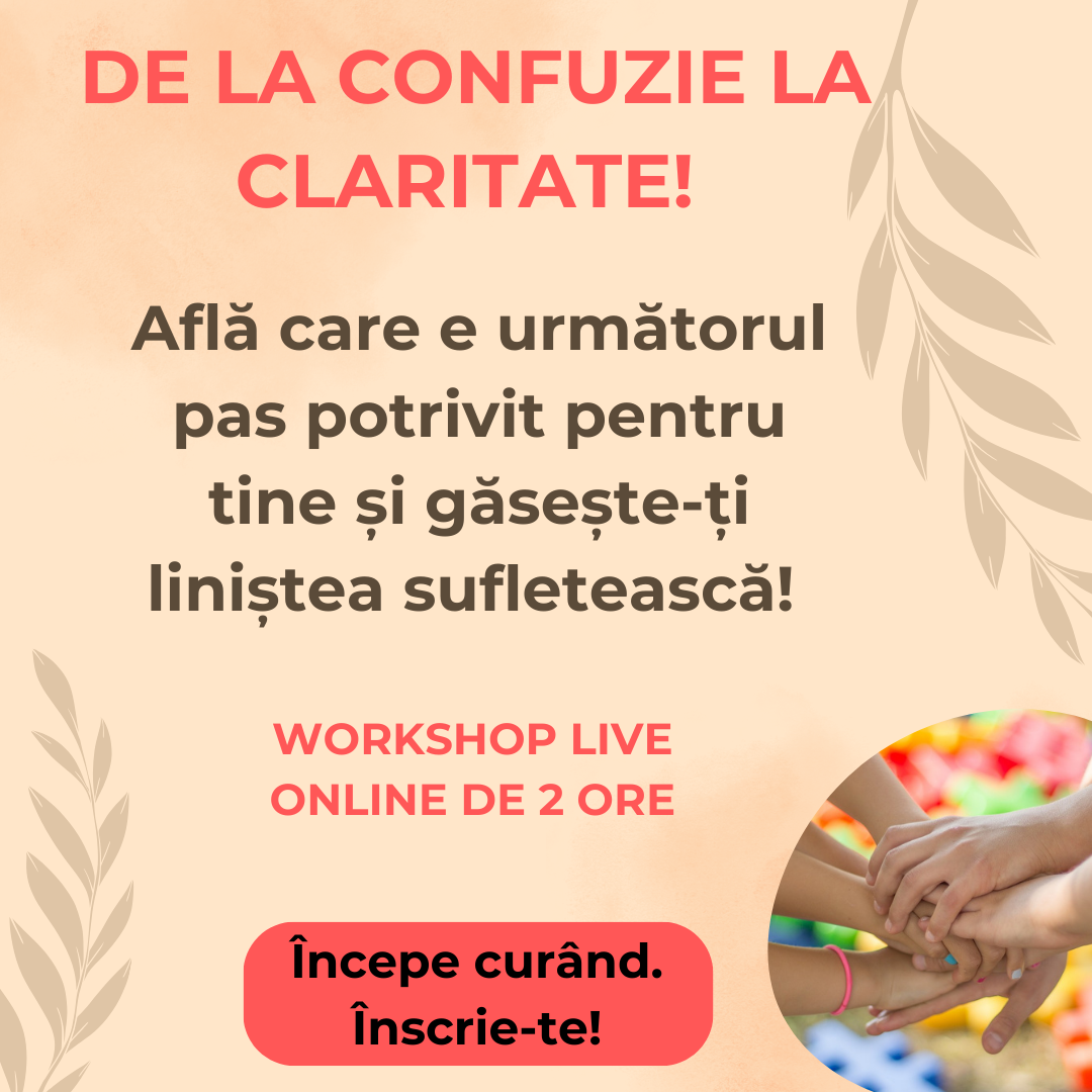 💥 💥 💥 Te invit cu drag la un Workshop online LIVE de 2 ore, ca să faci primii pași să ieși din confuzie și să-ți găsești liniștea sufletească!