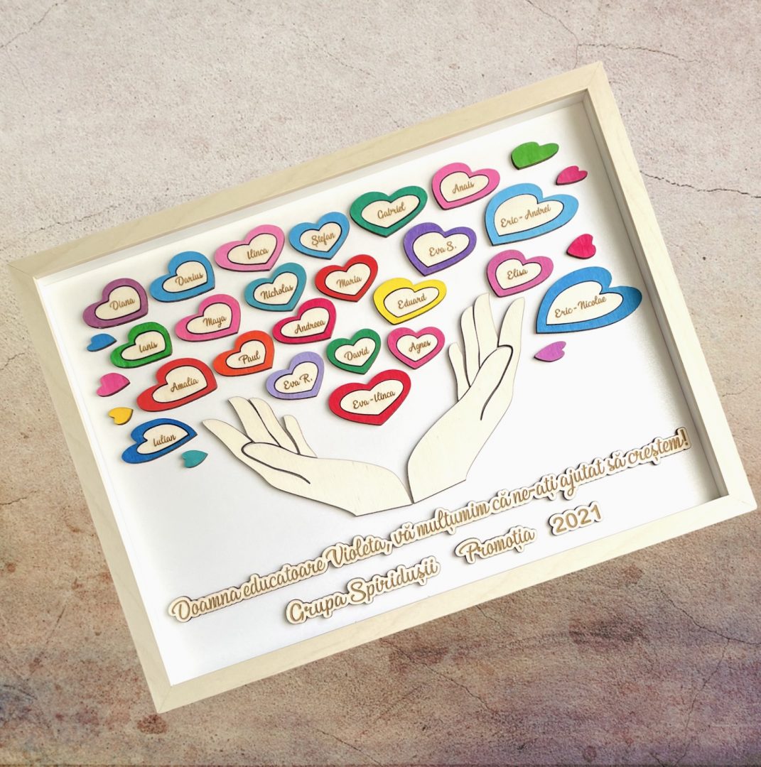Rama personalizata cu prenumele elevilor si mesajul ales de dumneavoastra.