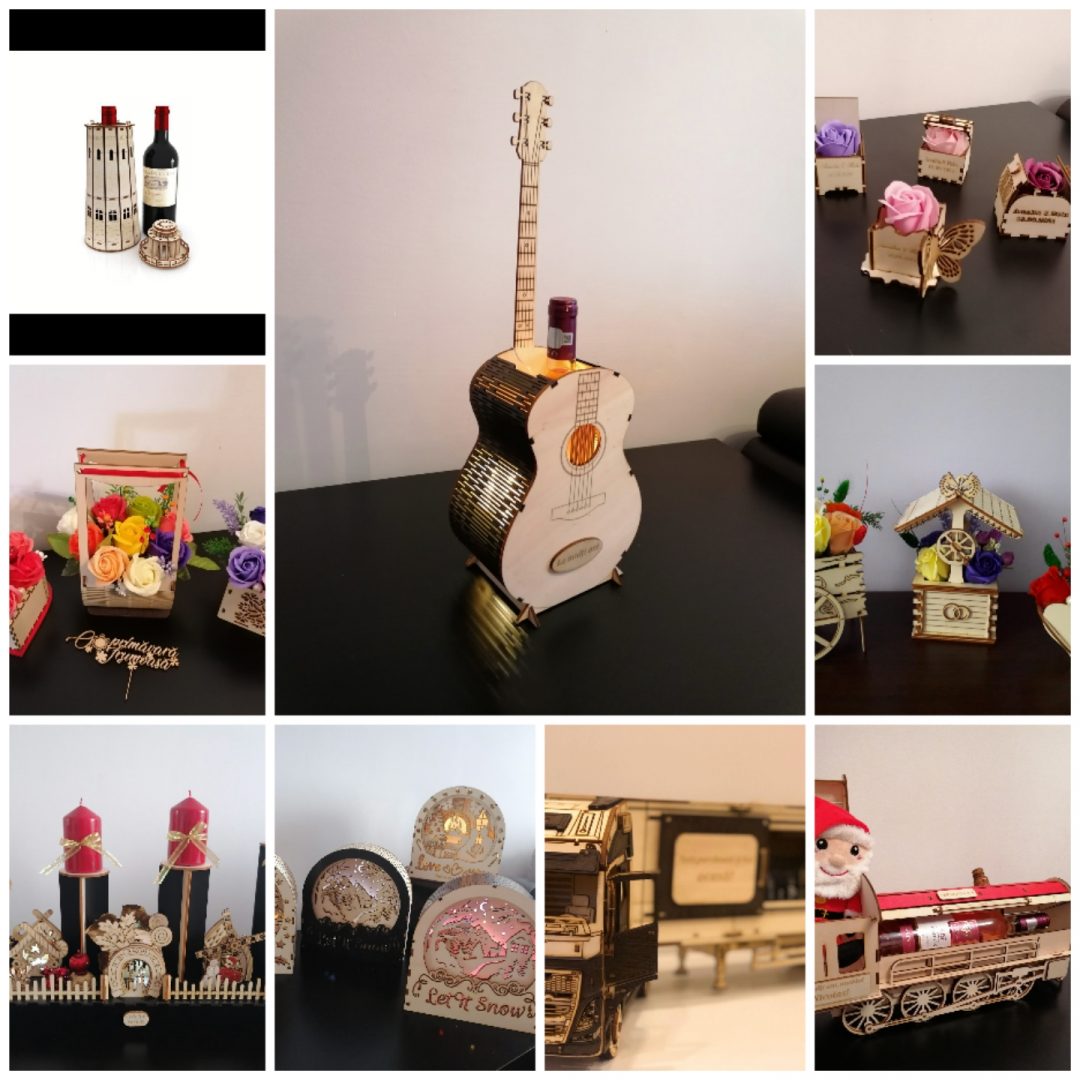 Cadouri, marturii de nunta, cutii pentru aranjamente florale, cutii pentru sticle de vin unicate si personalizate. Va asteptam cu drag pe pagina de facebook “Cadouri Speciale Brasov”
