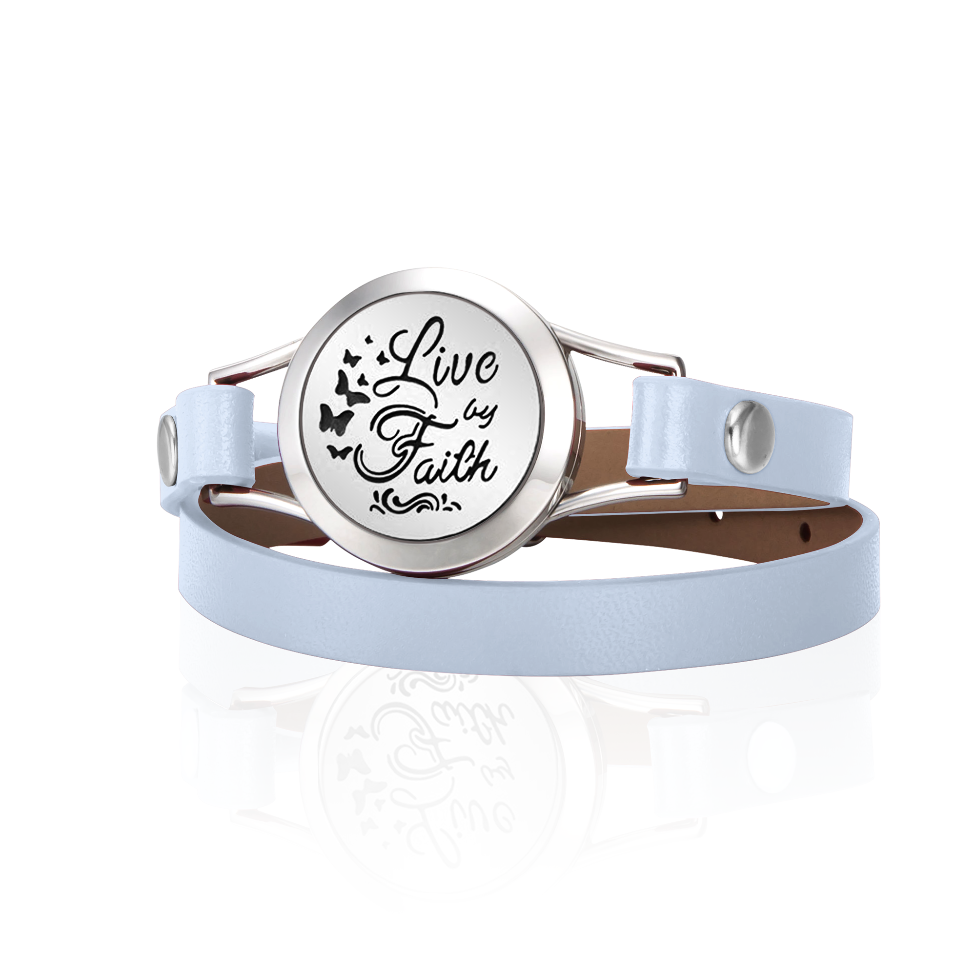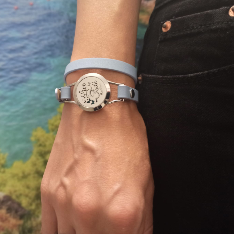 Bratara Aromaterapie, Curea din Piele Ecologica Bleu, Dubla, Live by Faith