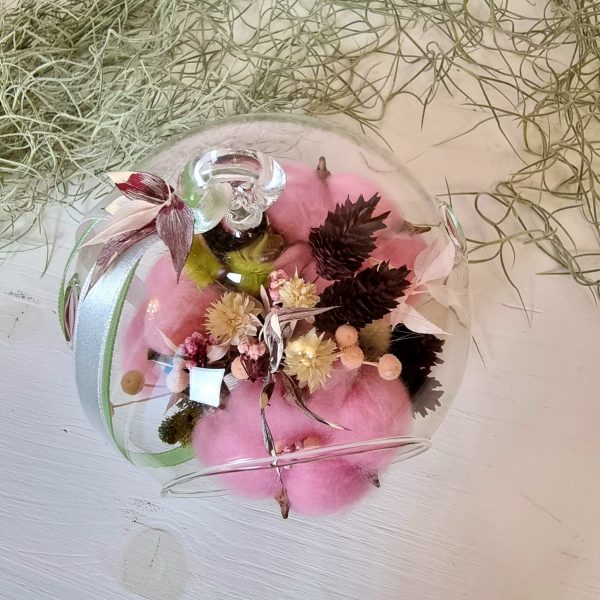 Globul  “Am o zi minunata” este un cadou pregatit pentru a fi daruit unei doamne/domnisoare delicate care se bucura de orice obiect care evidentieaza energia feminina. Produsul este realizat intr-un glob de sticla din plante uscate. Panglicile pot fi inlocuite cu snur de martisor.  Culorile plantelor varieaza in functie de stocul disponibil.