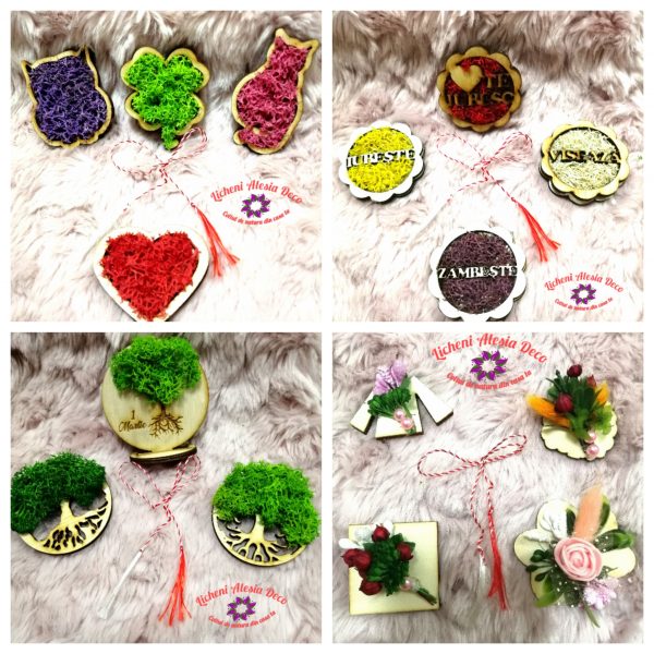 Mărțișoare pe blank de lemn cu licheni și diverse plante uscate img1642958419587 131b52d2