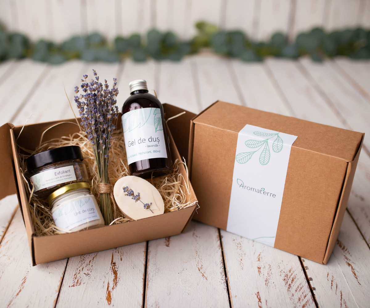 Pachetul Cadou Parfum de Lavandă creat de Aromaterre conține: