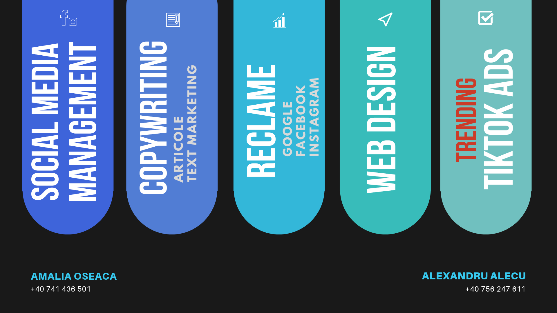Sunt Amalia, Social Media & Brand Manager cu o experienta de peste 5 ani în domeniu și ajut business-uri mici și mijlocii sa crească și sa se afirme în online.