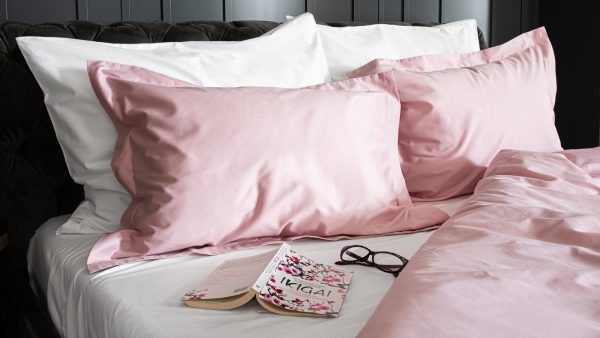 SET LENJERIE DE PAT DIN BUMBAC SATINAT ROZ (255 NODURI)