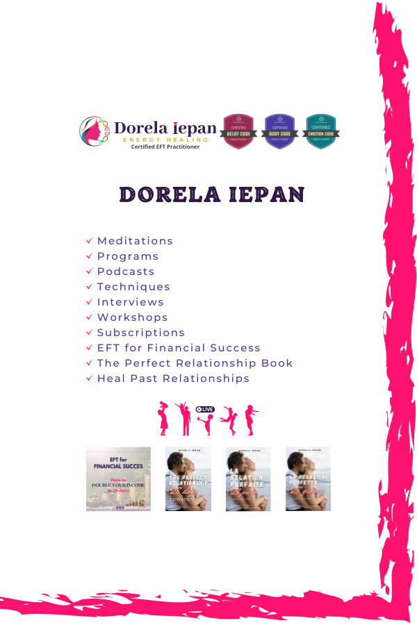 Sunt Dorela Iepan, Energy Healer, Practician Certificat ECP1, BCP2, BCP3 și EFT, autoarea cărții Relația Perfectă și programului EFT pentru Succes Financiar.