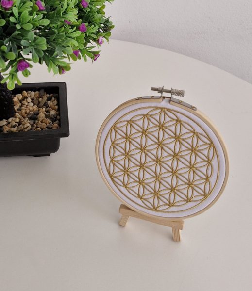 Tablou brodat cu simbolul geometric sacru Floarea Vietii- simbolul perfectiunii, echilibrului si armoniei.